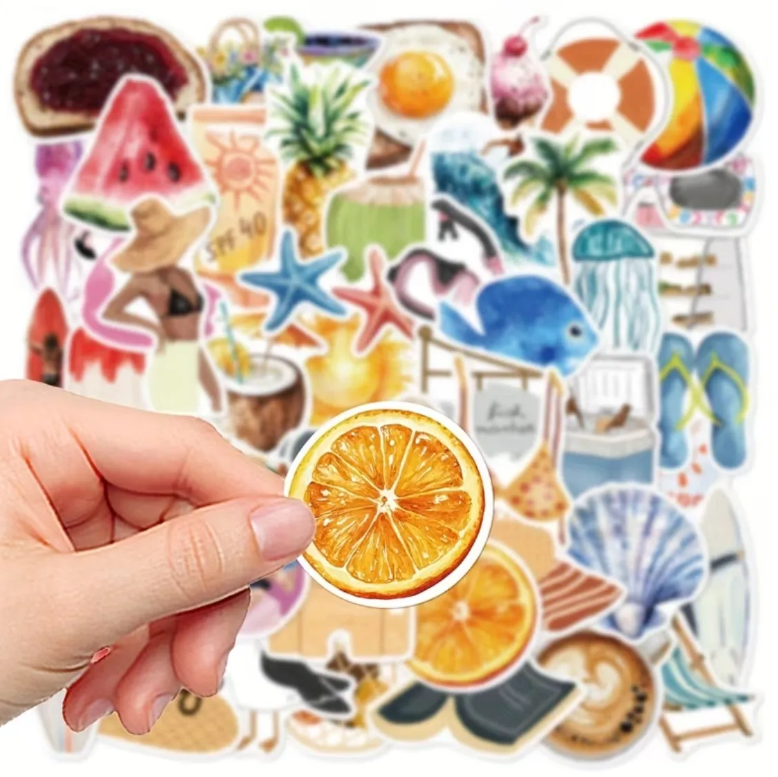 Shto atmosferën e verës në çdo krijim me Stikera Dekorative Summer Vibes. Ky koleksion përfshin modele të ndryshme me elementë verorë si fruta, det, plazh, valë, aksesorë pushimesh dhe ilustrime shumëngjyrëshe.